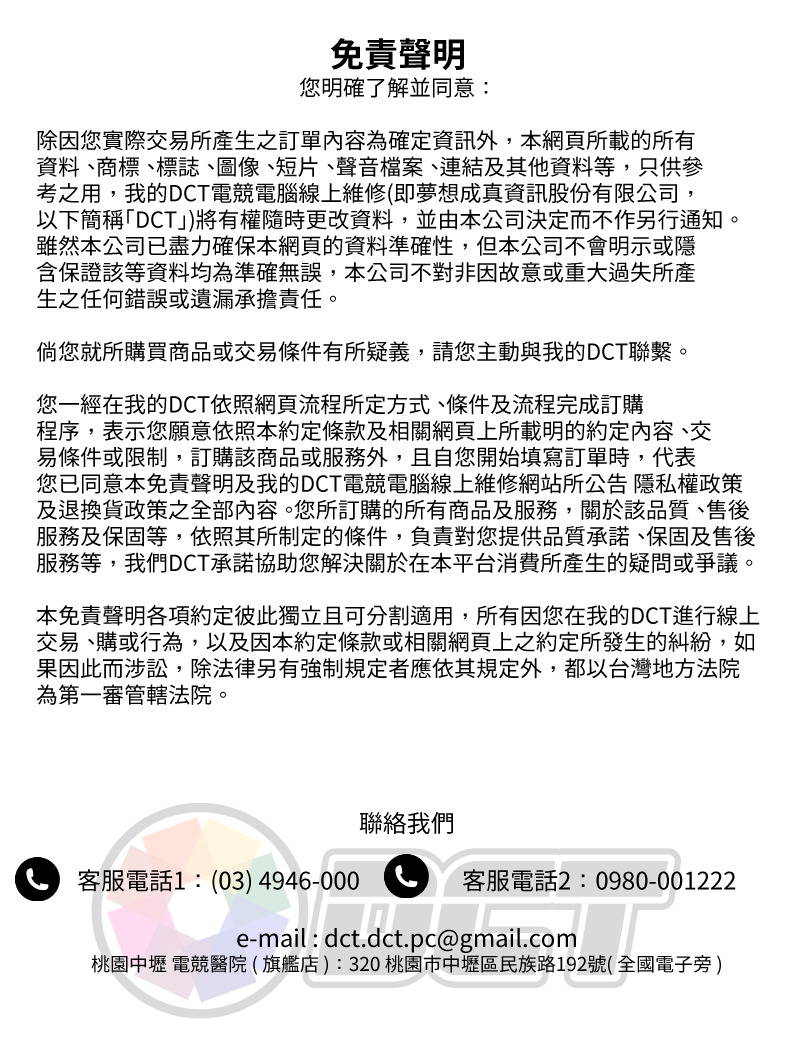 備註: 因電腦零件汰換很快 會根據情況因缺貨或時關係有可能 更換/升級 同等價值不同廠牌零件