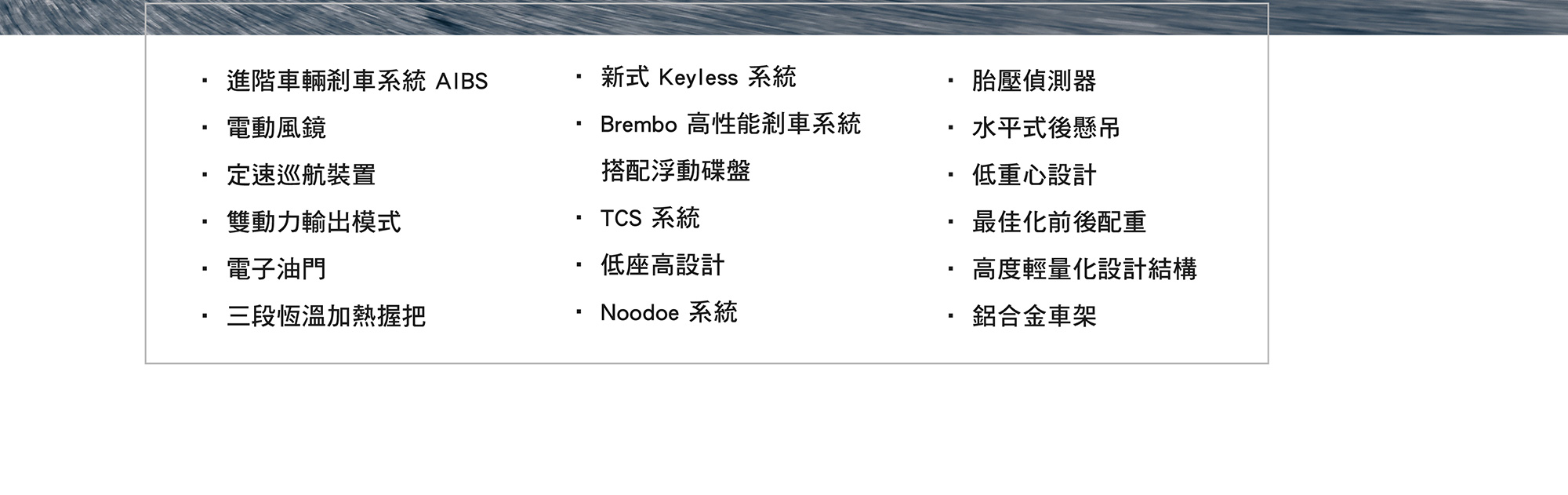 | 輪胎規格(前/後) | FR:120/70-R15 RR:160/60-R15 |